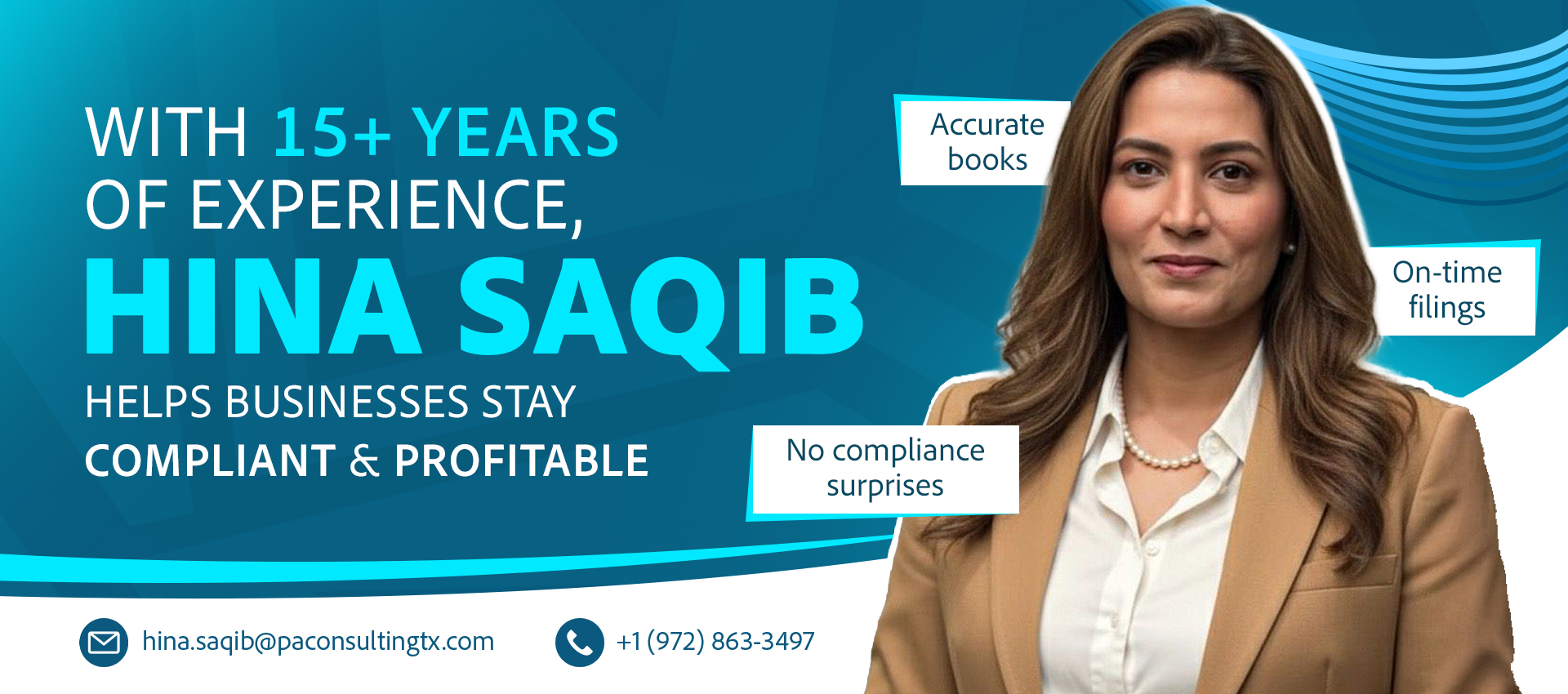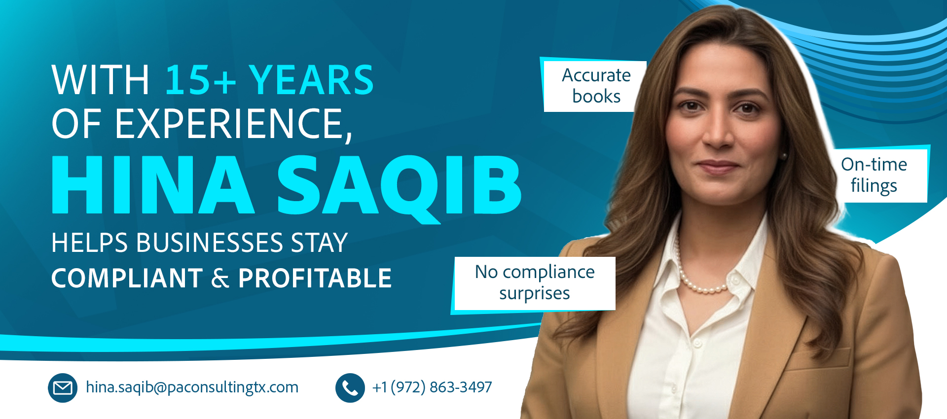 Led by Hina Saqib, M.S., PA Consulting & Financial Services is built on the belief that accounting should be simple, transparent, and tailored to each client’s needs. Whether you are an entrepreneur, a growing business, or an individual taxpayer, our team delivers reliable solutions designed for efficiency and long-term success.